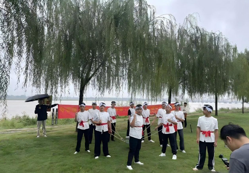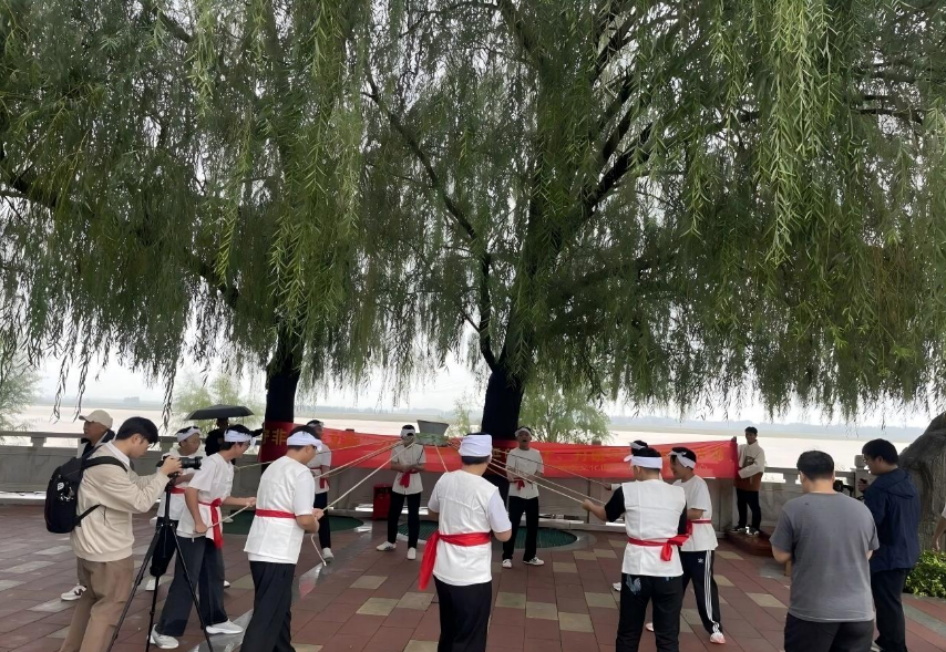 2025年9月27日,郑州黄河文化公园(炎黄广场),在河南省非物质文化遗产保护和智慧化中心主办的“守非遗 兴文旅”2025年非遗项目展演活动中,来自中牟新区雁鸣湖镇中学的“打硪号子”惊艳亮相。